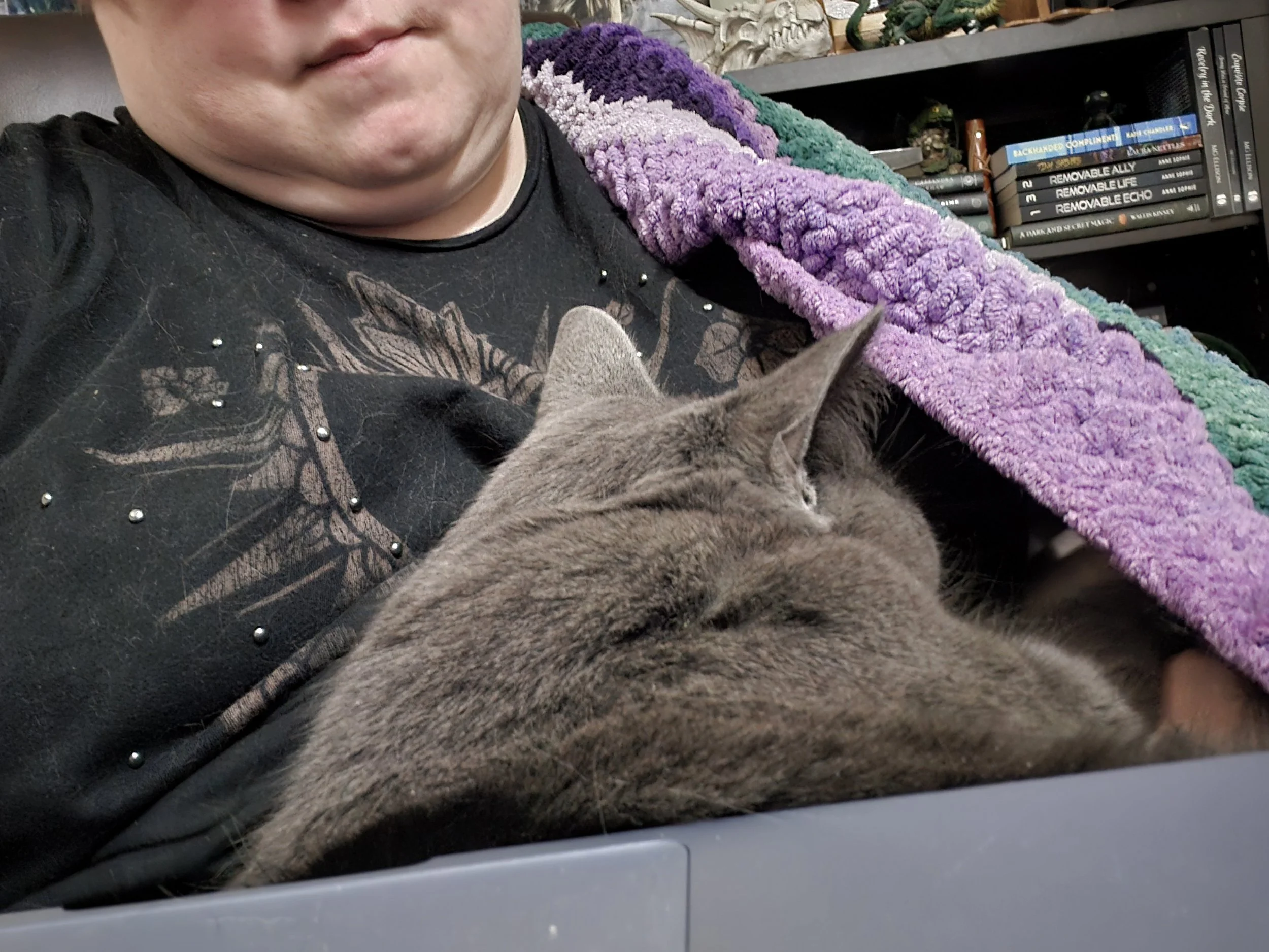 Yes, yes I did. Here is your monthly(ish) dose of my little fluff bucket. She has been super cuddly lately as the weather gets colder, thankfully I can write over her with the laptop a little easier then the big computer. Anywho, I think I got everything said I wanted to say. So-Until Next time,๐